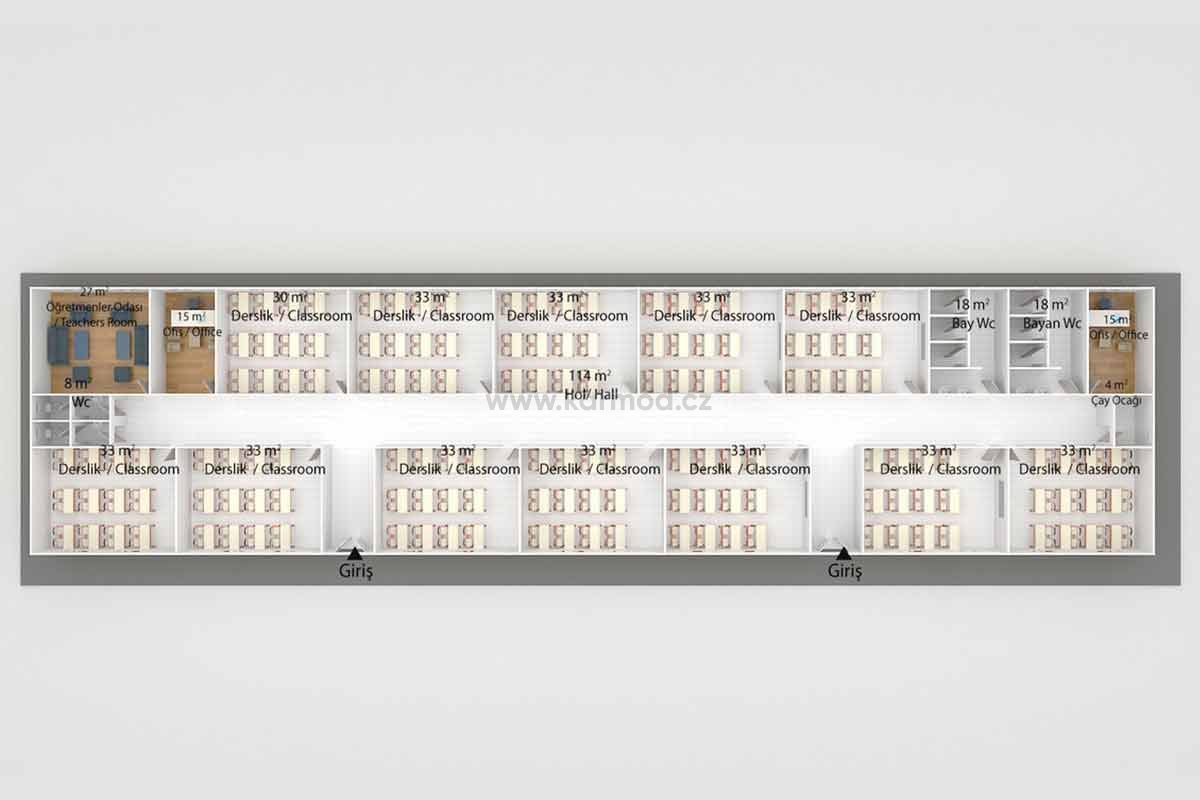 681 m² Modulární prefabrikovaná škola
