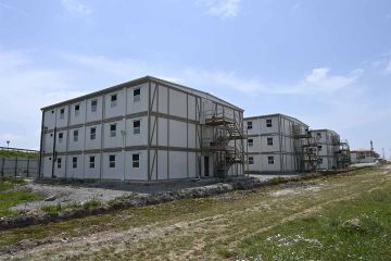 - rozsáhlé stavební tábory z přenosných kabin.